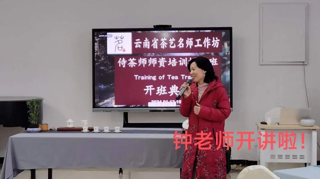 2023年1月13日上午,冬日暖阳中,云南省茶艺名师工作坊侍茶师师资培训提升班开班了。开班仪式上,工作坊主持人和玉娘老师以“成长和展望”为关键词做了开场后,主讲者钟梅老师便开启了今日的知识之旅。